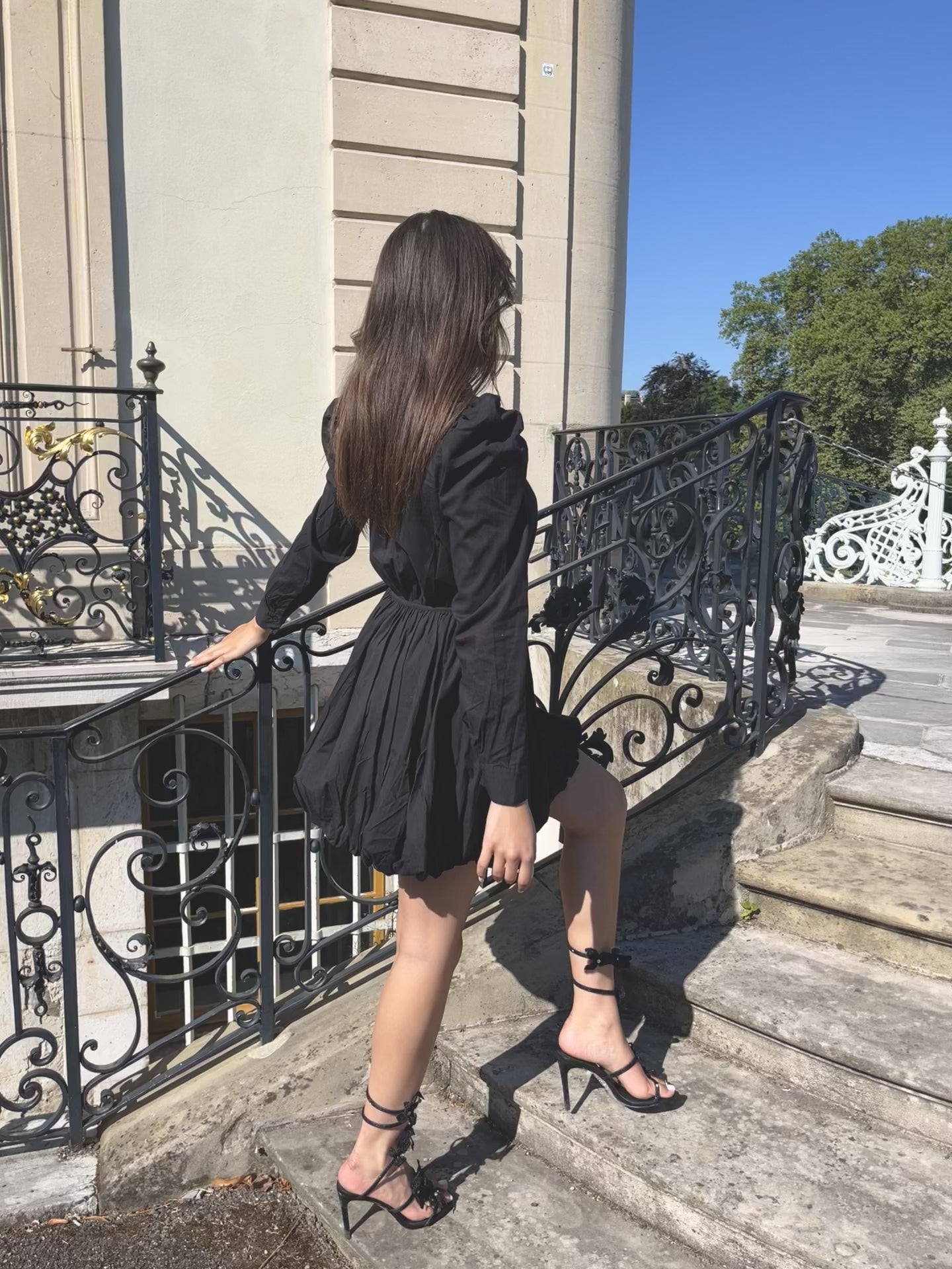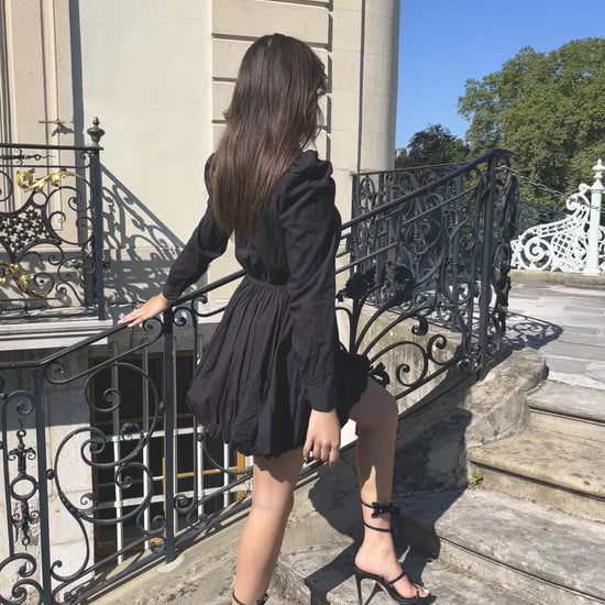 Avec son volume aérien, ses manches bouffantes et son nœud majestueux, elle capte la lumière sans effort. Sa teinte profonde et raffinée donne immédiatement une allure sophistiquée, tout en restant confortable et fluide.